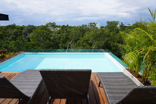 Traveling with a group and need more space? I recently stayed in one of the penthouse villas at Panoramico Tulum, which is in the town of Tulum (so about 10 minutes from the hotel zone) and we really loved it. The villa we rented was chicly decorated, with three large king bedrooms—all with ensuite baths—and our very own, private rooftop infinity pool. There’s also the coolest circular-shaped shared pool at the top of the complex that’s just so IG worthy. You can book several of the villas at Panoramico on AirBnB and VRBO. Below you'll find a complete tour of our room at The Panoramic, Tulum: