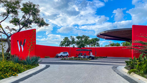 The entrance to the property is grand and well-manicured; guests eyes are immediately drawn to the iconic red W sign out front, then your car is ushered past the guard shack and onto a tree-lined, paver stone road that winds down into the jungle for a few miles, finally arriving at a red circular porte-cochère. Valet attendants are patiently waiting out front, where they take your keys and your bags and escort you to the check-in area, which is located past a sleek hallway with water cascading down the walls.